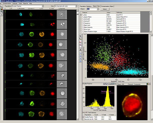 Taken together, the capabilities of the ImageStreamX Mark II make it superior for traditional flow applications while greatly expanding the scope of flow cytometry. Applications include the study of cell-cell interactions, phagocytosis, colocalization, apoptosis and autophagy, the characterization of circulating tumor cells, and many others.